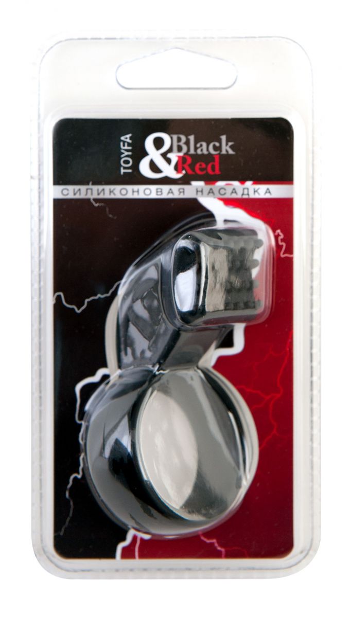 Силиконовая насадка. С кольцом для крепления и клиторальной стимуляцией. С орнаментом.