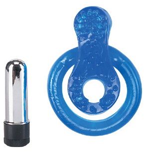Водонепроницаемое кольцо для полового члена с дополнительной фиксацией мошонки и выносным мини-вибратором, для стимуляции клитора.