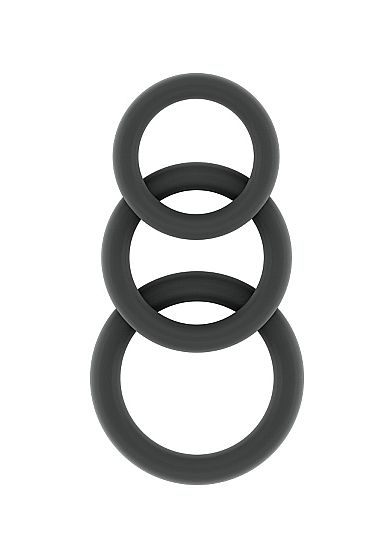 Набор из 3 серых эрекционных колец SONO No.25 разного диаметра. Внутренний диаметр большого кольца - 3 см., внешний - 4,2 см. Внутренний диаметр среднего кольца - 2,5 см., внешний - 3,7 см. Внутренний диаметр малого кольца - 2,2 см., внешний - 3,2 см.