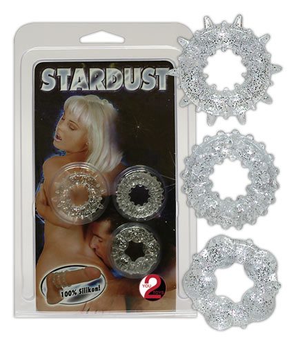 Набор силиконовых эрекционных колец из трех штук на мужской половой ораган. Материал - переливающийся, блестящий, очень эластичный.