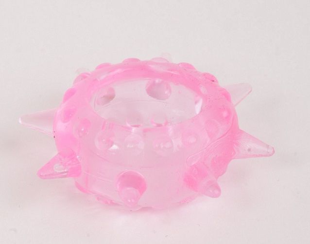 Розовое эрекционное кольцо с мягкими пупырышками и шипиками. Материал ПВХ. Внутренний диаметр - 1,7 см.