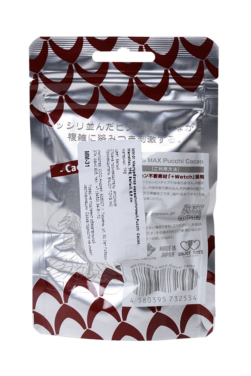 MensMax Pucchi — мультифункциональные мини-мастурбаторы, которые выделяют густую смазку при добавлении воды. Они невероятно удобны в командировках и путешествиях, хотя и в повседневной жизни могут подарить немало эмоций. Инновационный материал +Wetch отличается от всех существующих материалов — он очень приятный на ощупь, быстро принимает температуру тела и при добавлении воды выделяет усиливающий скольжение гель, который не скатывается и не высыхает даже во время длительных игр. Компактный размер позволяет всегда носить игрушку с собой или брать ее в поездки. Внутренний рельеф в форме зерен какао обеспечивает дополнительный массаж пениса. Особенно сильно он ощущается при стимуляции головки. MensMax Pucchi Cacao — удовольствие для прогрессивных.