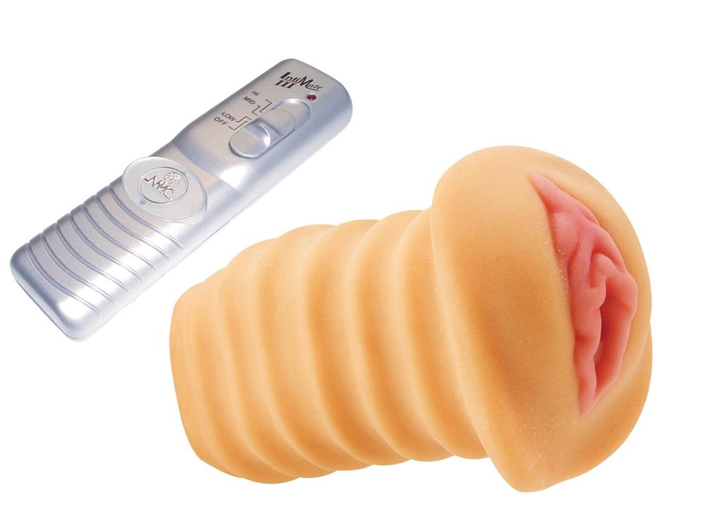 Мастурбатор-вагина с вибрацией и пультом управления PURE INDULGENCE. Пульт управления проводной, управляет вибропулей с 3 скоростями.