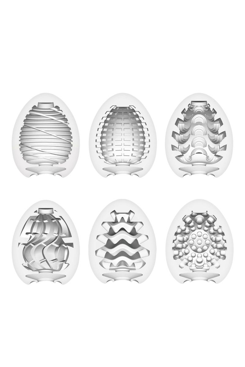 Полдюжины яиц в прозрачной пластиковой упаковке… И у каждого из них свой собственный секрет! Оригинальные мастурбаторы в форме яиц, выполненные их необычайно эластичного материала, скрывают внутри волнующий рельеф. Шишечки у Clicker, спирали у Silky, сетка у Spider, ступени у Stepper, линии у Twister и волны у Wavy… Какое бы из 6 яиц вы ни выбрали, вас ждёт удовольствие – стоит только воспользоваться лубрикантом, вставить головку в игрушку и начать совершать привычные движения рукой. Размер яйца - 5,3 х 5,3 х 7 см.