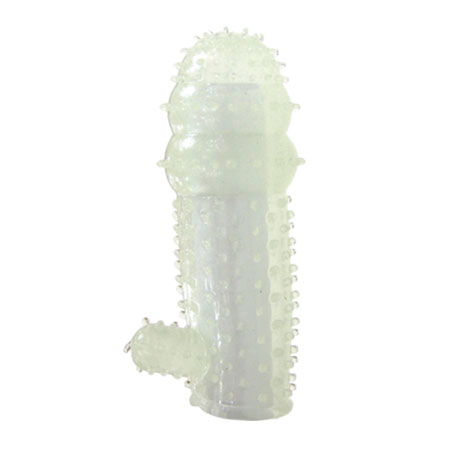 Эластичная насадка с клиторальным стимулятором для большего наслаждения, с ярко выраженными пупырышками на поверхности.