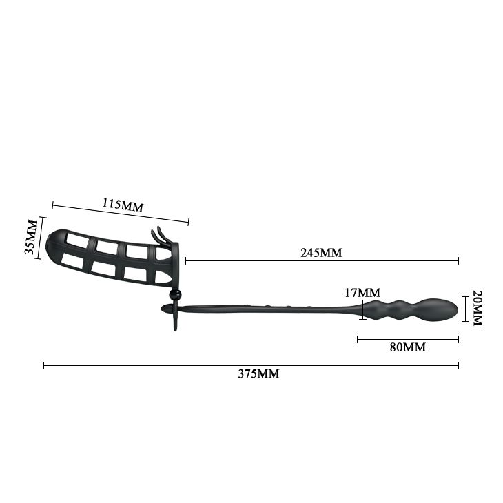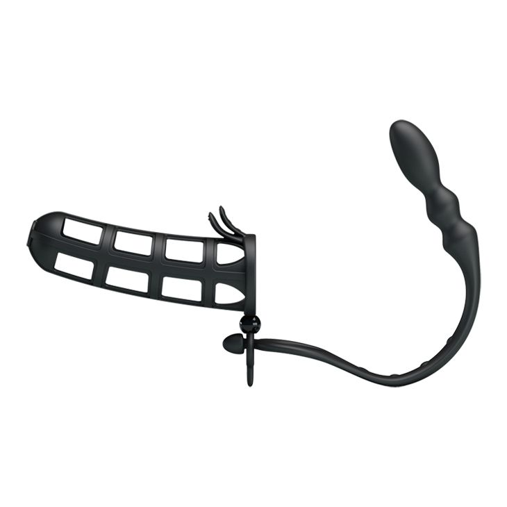 Закрытая силиконовая насадка на пенис и ребристый анальный стимулятор могут быть использованы как вместе, так и по отдельности. Выполнены в строгом чёрном цвете из нежного силикона. Рабочая длина насадки - 11,5 см., диаметр - 3,5 см. Длина анального хвоста - 24,5 см. Рабочая длина анального хвоста - 8 см., диаметр - 2 см.