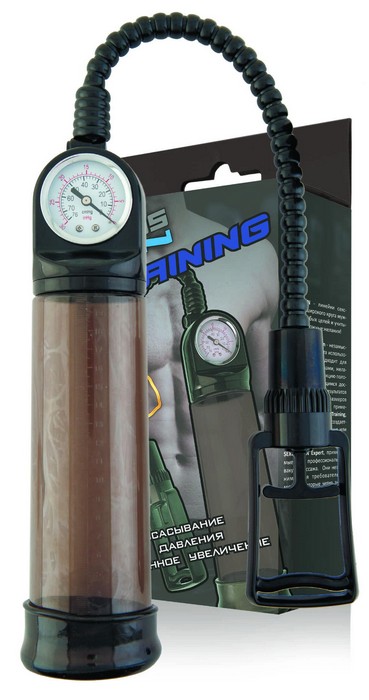 Помпа-массажер серии Training. Выполнена в черном цвете, силикон и абс-пластик. Манометр, удобный рычаг откачки воздуха. Программа эффективных тренировок в подарок! внешний диаметр 7,8, внутренний 6,5, длина 20 см.