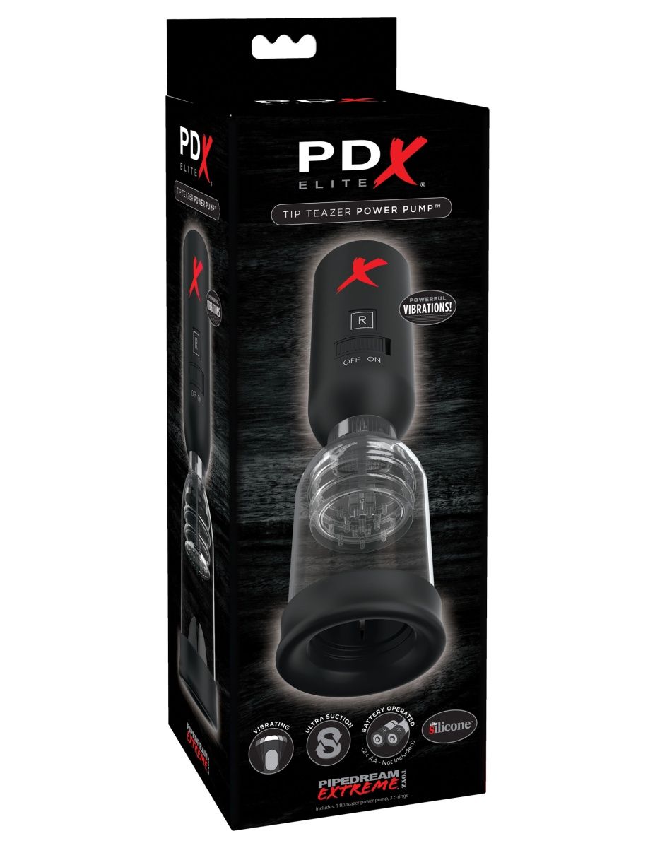 Испытайте сильное удовольствие именно там, где вы хотите! Мощная вибрация и удивительное всасывание окружают головку полового члена с PDX Elite Tip Teazer Power Pump. Наслаждайтесь мощной комбинацией удовольствия, как никогда прежде, с интенсивной вибрацией и невероятным всасыванием прямо на кончике вашего члена. Насос PDX Elite Tip Teazer обеспечивает концентрированное удовольствие благодаря мягкой, гибкой внутренней вибрационной подушке, покрытой дразнящими усиками, и гладкому эластичному уплотняющему кольцу Elite Silicone, плотно прилегающему к головке вашего члена. С легким переключателем включения и выключения и кнопкой спуска, которую можно прерывисто нажимать для дополнительной стимуляции, вы можете испытать вакуумное уплотнение и лучший интимный массаж в вашей жизни! Кнопка быстрого сброса давления немедленно уменьшает всасывание и может быть пульсирующей для дополнительной стимуляции. Мощные вибрации. Сильный мотор обеспечивает интенсивную стимуляцию! В комплекте: вибростимулятор, 3 эрекционных кольца, средства по уходу за игрушкой. Диаметр колец - 2,5, 3,2 и 3,8 см.