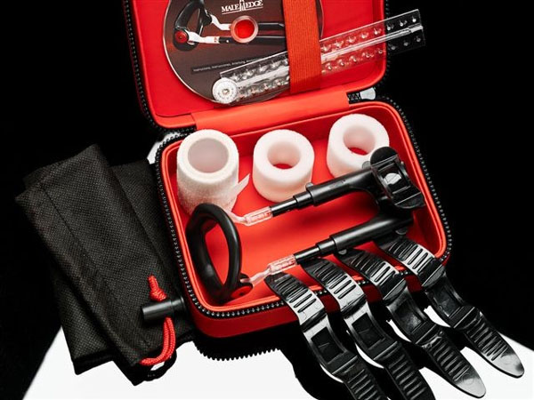 Теперь увеличить член можно и без хирургического вмешательства. Достаточно Male Edge Pro – запатентованного прибора, способного удлинить пенис – без операции, без боли, с гарантией! Высокую эффективность экстендера доказывают клинические исследования. В основе работы Male Edge Pro лежит метод растяжения полового члена. Когда ткани натягиваются длительное время, в них образуются новые клетки. Их рост и приводит к увеличению предмета мужской гордости как в длину, так и в ширину. В отличие от своих собратьев Male Edge Pro имеет малый вес (65 грамм) и приятную цену. Связано это с тем, что для производства экстендера использовался не металл, а высокопрочный пластик. Он, не вызывая аллергических реакций и раздражения на коже, гарантирует повышенный комфорт во время ношения. Кроме того, пластик приятен на ощупь, что особенно важно при многочасовом использовании. Для начала применения Male Edge Pro следует отсоединить стержни от платформы, ввести член до самого основания в упорное кольцо, сдвинуть крайнюю плоть, наложить на это место смягчающую подушку и зафиксировать её ремешком. Далее останется лишь отрегулировать длину стержней, поворачивая их по часовой стрелке, и защёлкнуть платформу. Внутри прозрачного цилиндра расположен цветной указатель с тремя рисками – 1200, 2000 и 2800 грамм. Чтобы усилить напряжение до необходимого значения, следует взяться за выступы платформы, сжать их, а затем оттянуть в сторону головки члена до щелчка. В первую неделю величина натяжения не должна превышать 1200 грамм. После как натяжение, так и время ношения будут увеличиваться еженедельно – до 2800 грамм и с 1 до 6 часов. Данный экстендер отличается от базового наличием дорожной сумочки, 3 дополнительных ремешков-фиксаторов, 2 смягчающих колец и самофиксирующегося бинта. Male Edge Extra – надень, защёлкни, увеличь! Комплектация Male Edge Pro: ремень-фиксатор - 5 шт., смягчающая подушка - 2 шт., эластичный самофиксирующийся бинт, дорожный чехол черный, футляр, инструкция на русском языке, телескопические штанги, измеритель пениса.