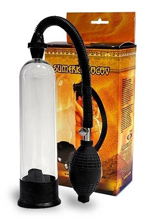 Простейший вакуумный массажер-помпа для мужчин. Создает хорошую степень разряжения в колбе за счет удобного ручного механизма выкачивания воздуха. Длина колбы 19 см. диаметр 5 см. Диаметр уплотнительного кольца 2,5 см.