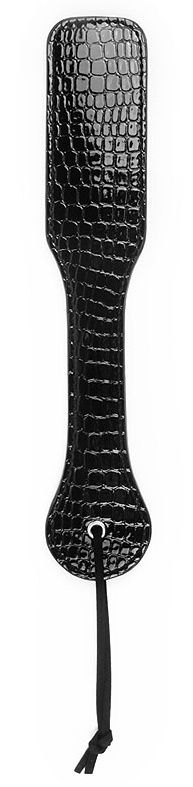 Великолепный БДСМ аксессуар для любителей нестандартных эротических развлечений. Шлёпалка подарит множество ярких, незабываемых эмоций. Форма изделия с широкой рабочей поверхностью и удобной ручкой позволит использовать его максимально эффективно. Петлю на конце секс-игрушки можно намотать на запястье. Интимный аксессуар идеально подходит для разогрева перед интимной близостью, а также в качестве элемента в ролевой игре. Поверхность шлёпалки выполнена под кожу рептилии.