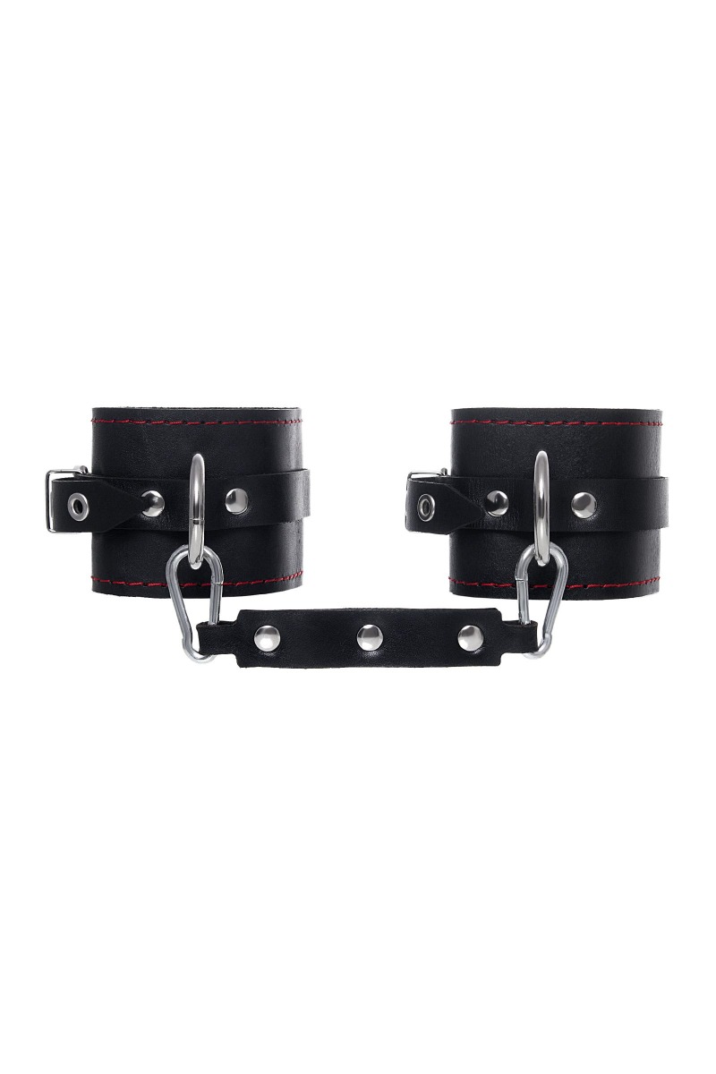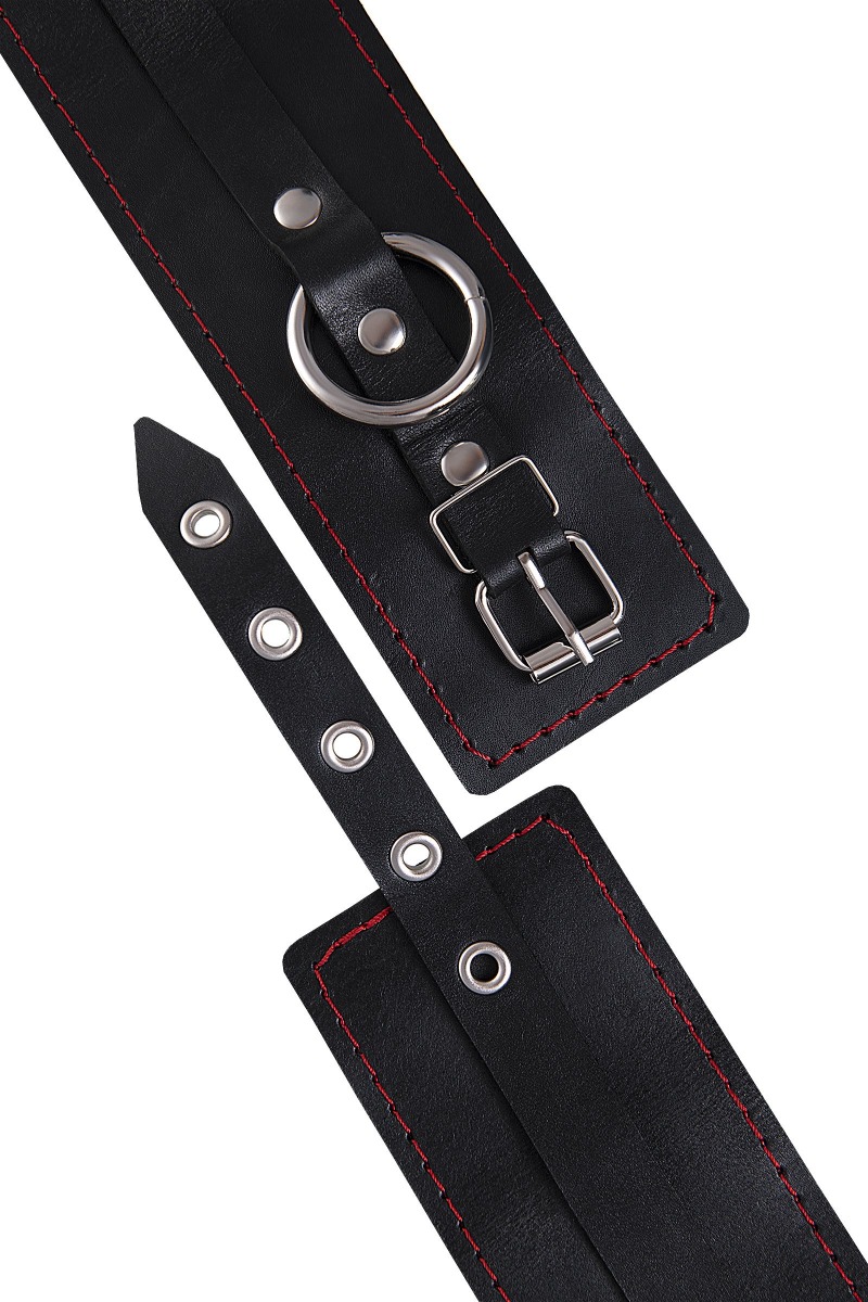 Эти однослойные кожаные оковы с контрастной строчкой красного цвета могут стать стильным аксессуаром, а могут послужить вашим целям по своему прямому назначению. Частичное обездвиживание и невозможность двигать руками или ногами дают вам полную власть над партнером – взрослые игры для взрослых. Наличие двух колец и карабинов, соединенных между собой кожаным ремешком, позволяет использовать изделие как раздельно – аксессуар-манжеты, так и как оковы для фиксации. К широким металлическим кольцам также можно присоединить и другие аксессуары при помощи карабинов. Благодаря универсальному размеру оковы могут использоваться и мужчинами, и женщинами. Размер легко регулируется с помощью металлических пряжек, органично вписывающихся в общий стиль. Длина манжет - 25 см, ширина - 6,5 см. Длина сцепки - 17 см.
