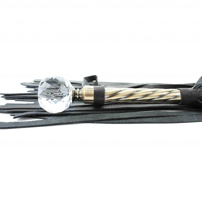 Эксклюзивная плеть с металлической ручкой. На конце ручки - крупный прозрачный кристалл.