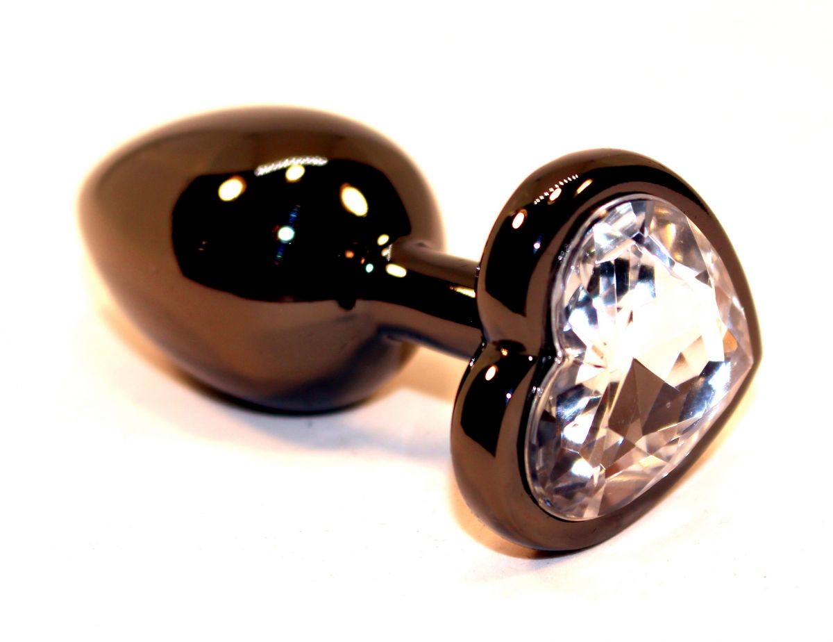 Анальная пробка черного цвета с ярким кристаллом в форме сердечка внесет разнообразие в вашу интимную жизнь. Обладает сглаженной формой, что позволяет обеспечить легкое введение и комфортное длительное ношение. Снабжена ограничительным основанием для безопасного использования. Рабочая длина - 6 см.