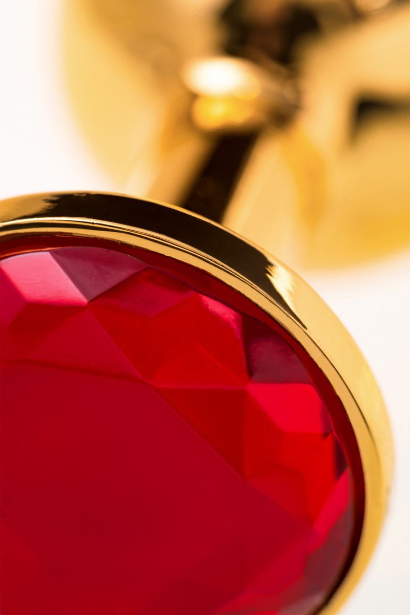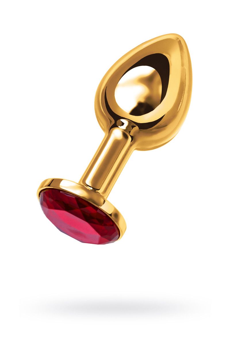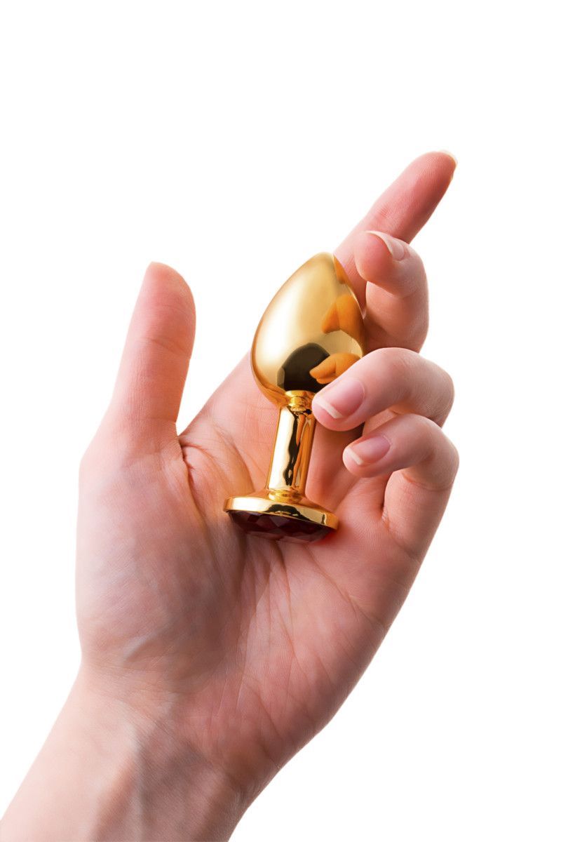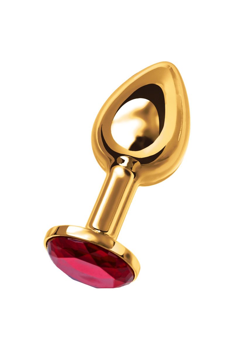 Малая золотистая анальная втулка с красным кристаллом. Поставляется в подарочной упаковке.