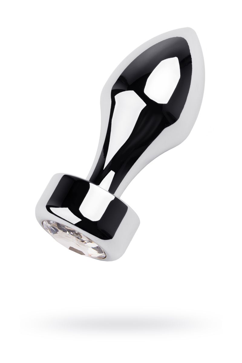 Серебристая втулка-пуля со стразом цвета алмаз подойдет опытным пользователям. Удобно вводится и удерживается внутри. Широкий ограничитель добавляет уверенности в том, что она не войдет слишком глубоко.