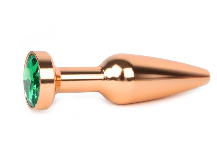 В секс-шопе Orgasmix вы можете купить Удлиненная коническая гладкая золотистая анальная втулка с зеленым кристаллом - 11,3 см. артикул 105769 по цене руб. с доставкой в город Санкт-Петербург. Мы осуществляем доставку по всей России. Ближайшая дата отправки этого товара . Заказы принимаются круглосуточно через интернет-магазин.