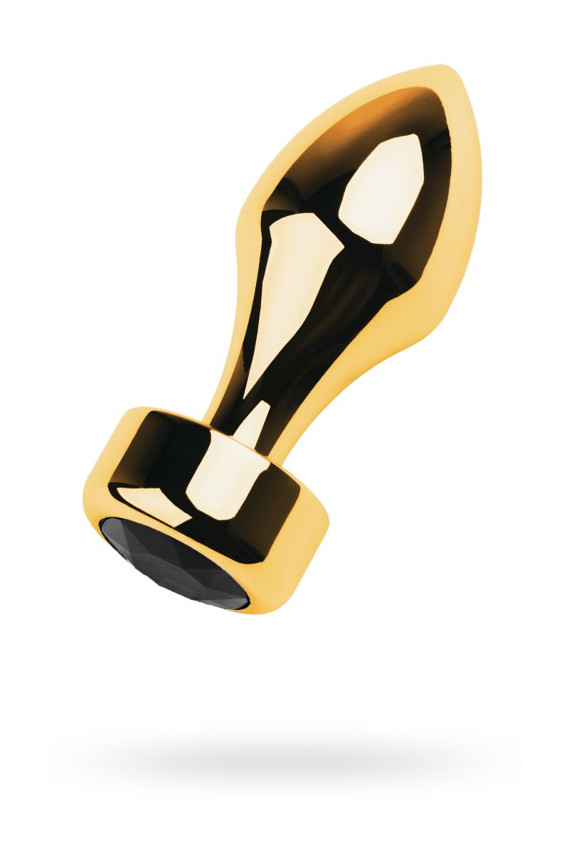 Золотистый каплевидный анальный плаг с чёрным кристаллом.