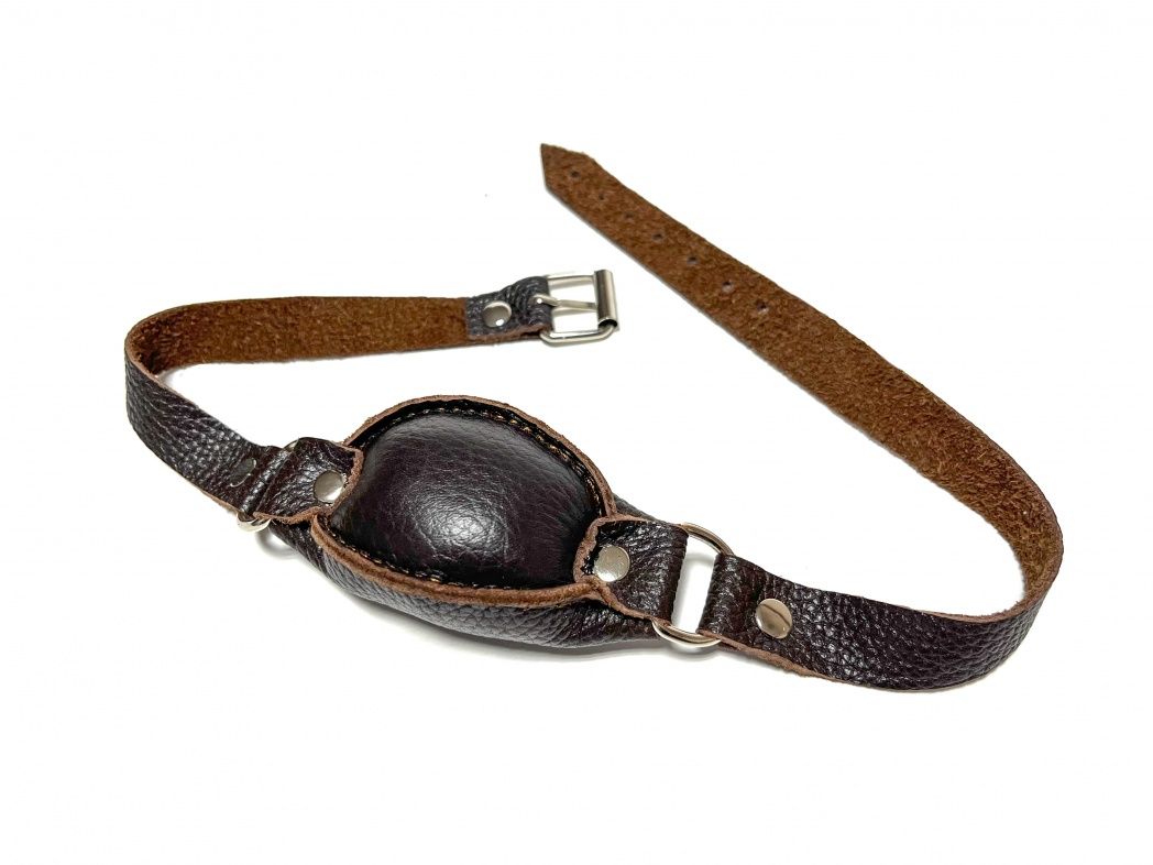 Качественный и удобный кляп, выполненный из натуральной кожи коричневого цвета. Благодаря наполнителю средней жесткости этот кляп будет комфортен в использовании. Аксессуар декорирован сварной металлической фурнитурой. Обхват удобно регулируется с помощью металлической пряжки. Отличный аксессуар для любовной игры и новых ощущений! Размер кляпа - 9 х 5 см. Ширина ремешков - 1,8 см.