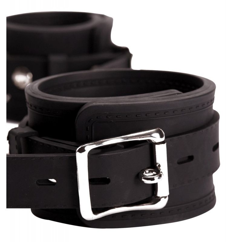 С этими наручниками сопротивление бесполезно... Мягкие силиконовые манжеты плотно облегают запястья и прочно фиксируют их, не травмируя кожу. Наручники регулируются в диаметре, а крепкие крючки-застежки могут быть прикреплены к любой Вашей атрибутике для неограниченных вариантов игры. Все металлические детали выполнены в роскошном бронзовом цвете. Длина манжет - 28 см.