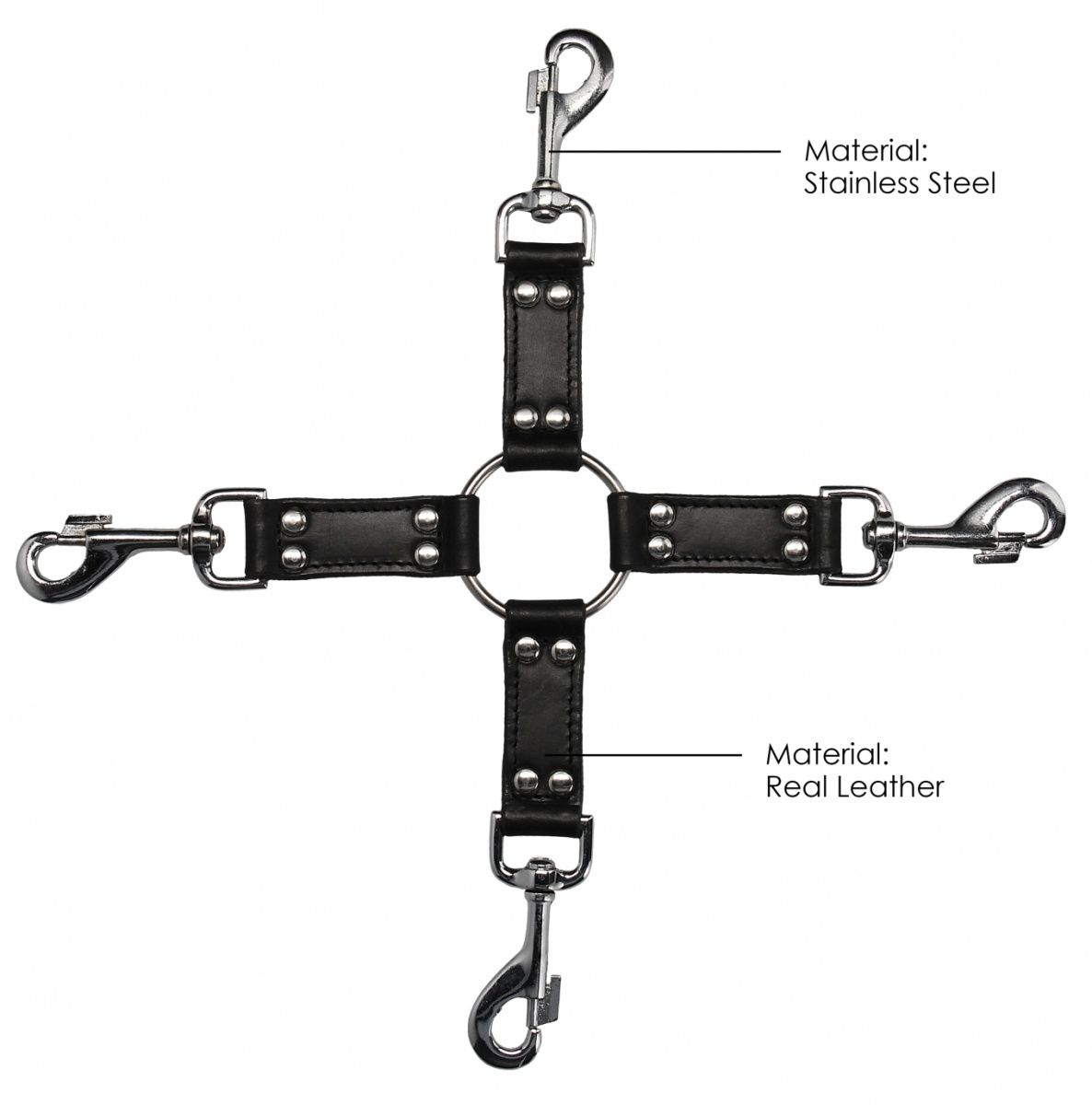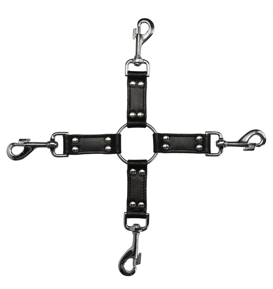 Крестообразный фиксатор 4-way Leather Hogtie Cross Hogtie. Сочетайте свои любимые наручники и кандалы с этим 4-сторонним кожаным крестом для связывания по рукам и ногам 4-WAY LEATHER HOGTIE CROSS! Полностью ограничить тело никогда не было так легко, когда вы хотите исследовать свой жизненный стиль БДСМ. Просто кликни, и играй! Начиная с прочного металлического О-образного кольца в середине, 4 рассчитанные на большие нагрузки кожаных ремня, каждый из которых снабжен быстроразъемным зажимом из нержавеющей стали, легко присоединяются к любому D- или O-образному кольцу. Привяжите ремнями руки и ноги своего саба сзади или спереди, чтобы обеспечить полный контроль и подчинение!