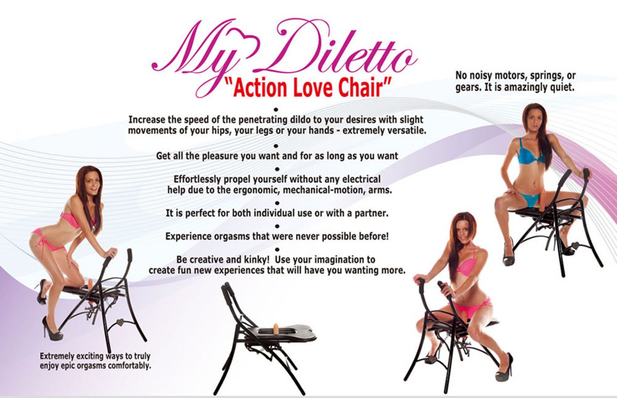 Секс-тренажер My Diletto. Работает без батареек и мотора - насадка-фаллос приводится в движение усилием бёдер. Всё, что вам нужно, - сесть сверху, впустить в себя смазанную лубрикантом насадку и двигать бёдрами. Очень компактен в сложенном виде. Длина насадки-фаллоса - 20 см.