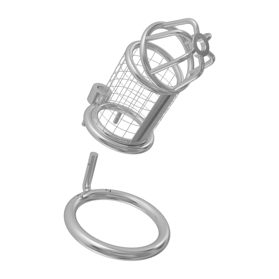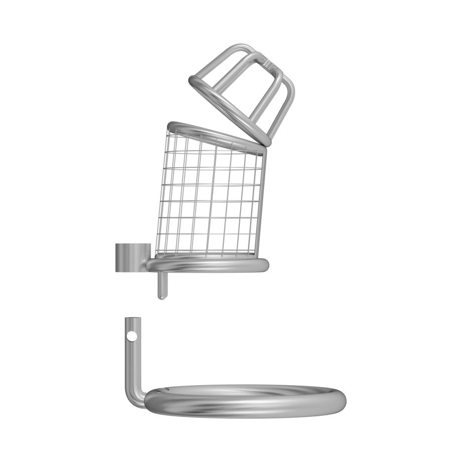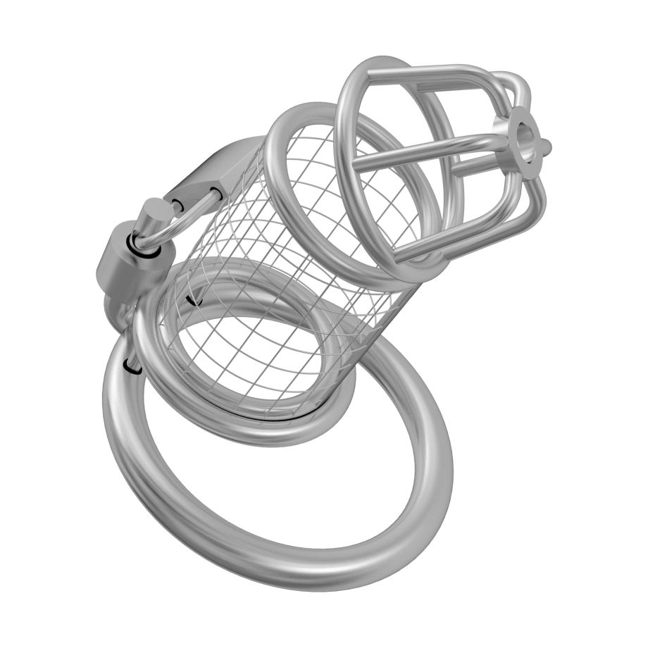 Надежно выполненный мужской пояс верности, препятствующий эрекции. Предназначен для сессионного ношения. Позволяет совершать гигиенические процедуры. Массивный и эффектный пояс полностью закрывает половой член. Фиксируется в области основания яичек при помощи неразъемного кольца, а сама сбруя в виде клетки надевается на половой член. Вся конструкция застегивается на небольшой замок с ключами в комплекте. Рабочая длина - 8,5 см. Внутренний диаметр корпуса - 3,5 см. Диаметр фиксирующего кольца - 5 см.