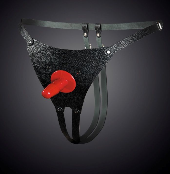 Трусики Харнесс. Изготовлены из натуральной кожи. При производстве используется никелированная фурнитура. Размер регулируется ремешками, которые крепятся на бёдрах (от 42 до 50 размера). В комплект входит съёмный пластиковый плаг для насадок. Идеально подходит для использования, как мужчиной, так и женщиной. Цвет черный. Длина плага - 6,8 см.
