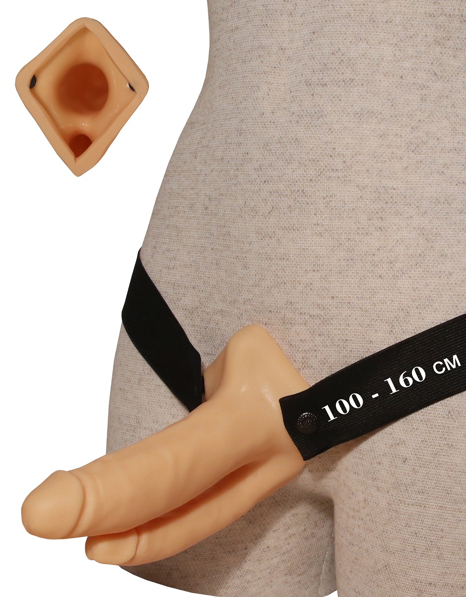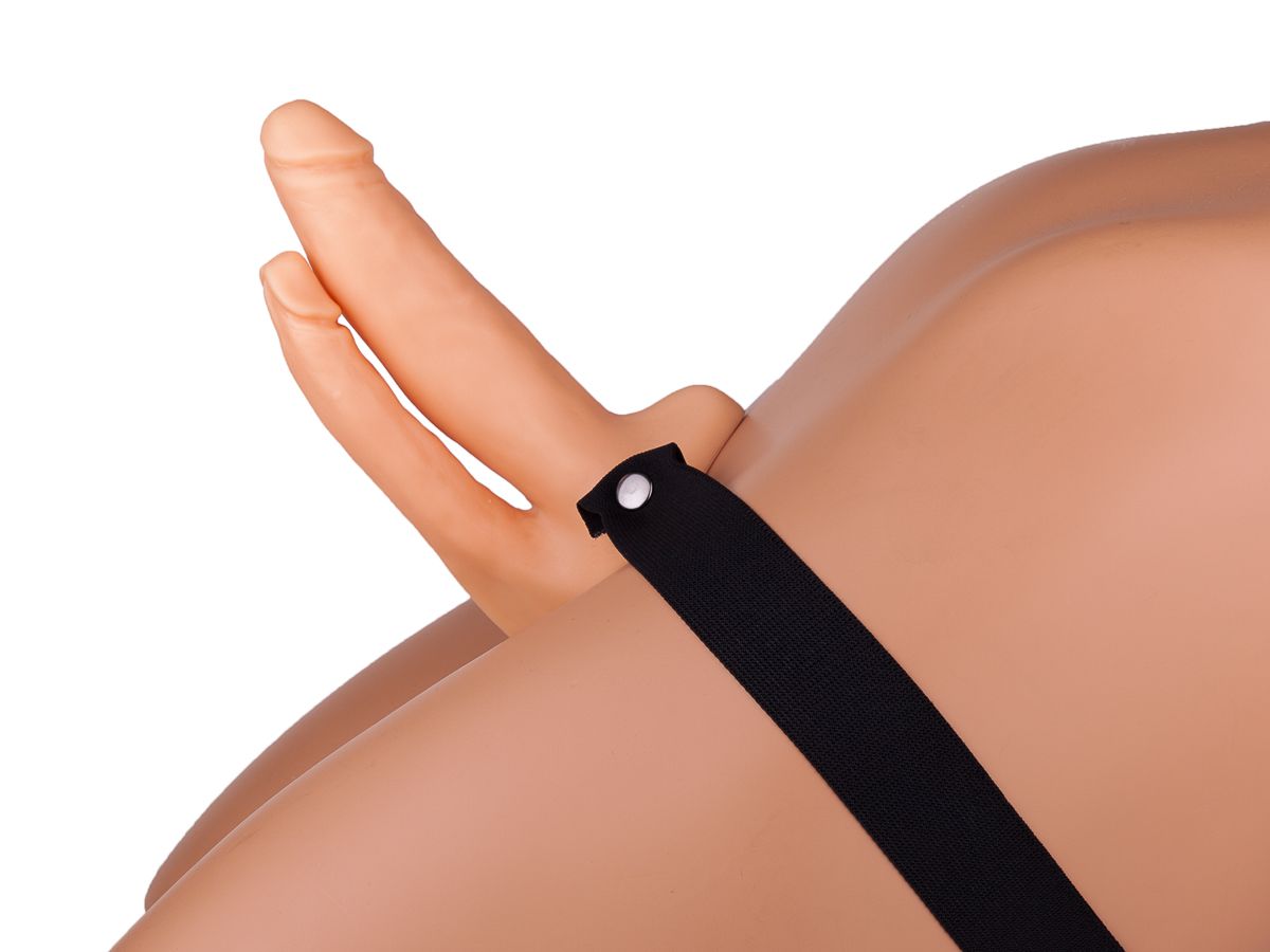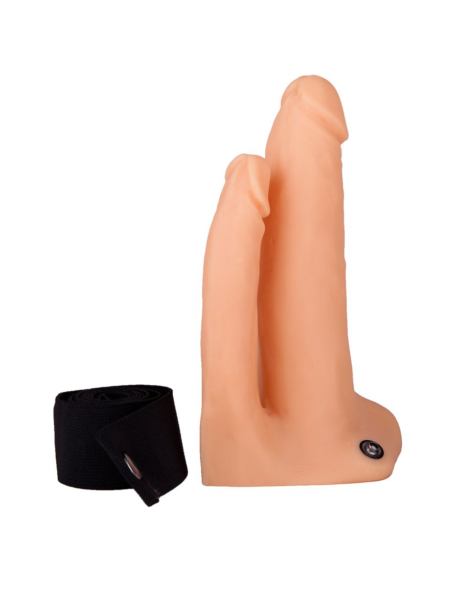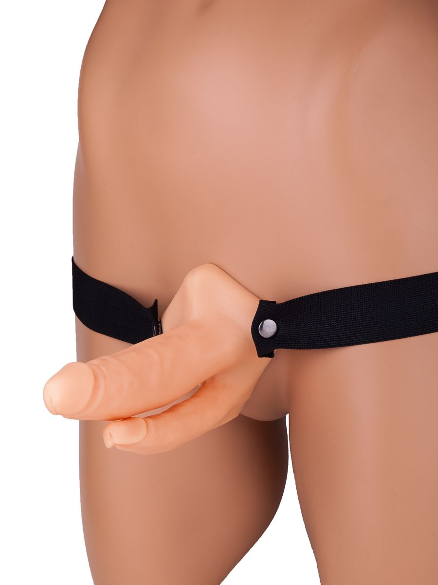 Чтобы показать женщине, насколько восхитительным может быть двойное проникновение, даже эрекция не нужна. При условии, конечно, что у вас есть этот страпон с двумя рельефными фаллосами из материала ПВХ-силикон. Чтобы доставить сексуальной партнерше колоссальное удовольствие, достаточно поместить свой пенис в полость фаллопротеза, а затем зафиксировать секс-игрушку на бедрах с помощью резинки. А дальше останется лишь погружаться-погружаться-погружаться во влажную вагину и анус. Длина анального фаллоса - 12 см. Диаметр анального фаллоса - 2,5 см. Обхват талии до 180 см.