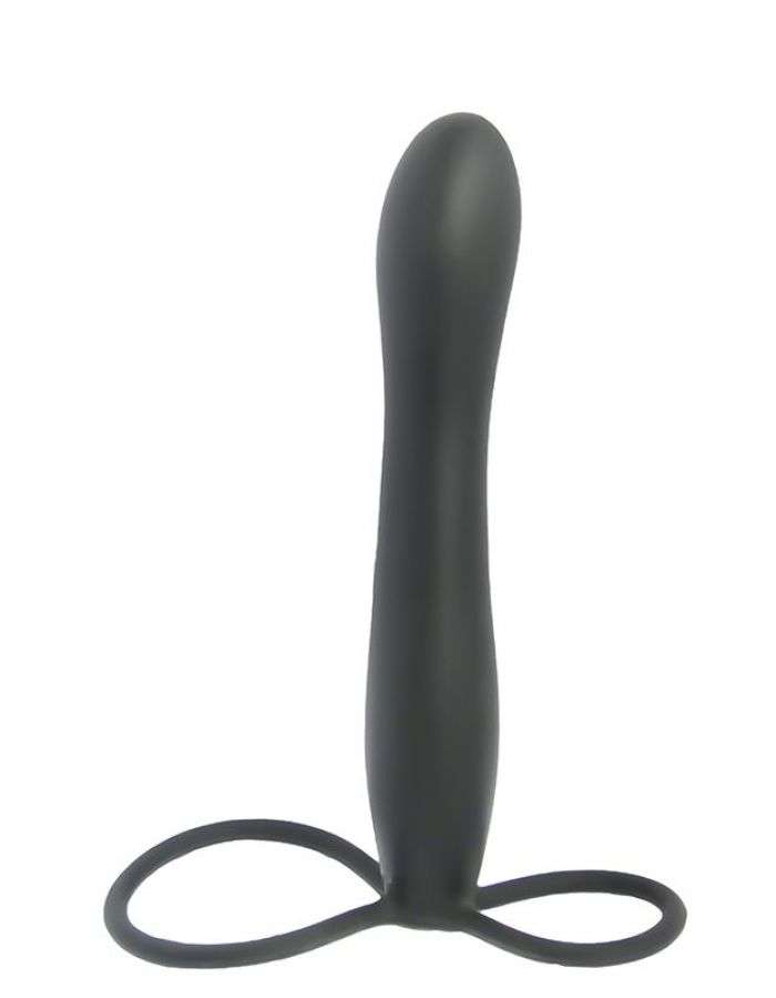Черный страпон с подхватом мошонки. Насадка страпона подходит для вагинального и анального секса. Рекомендуется использовать со смазкой.