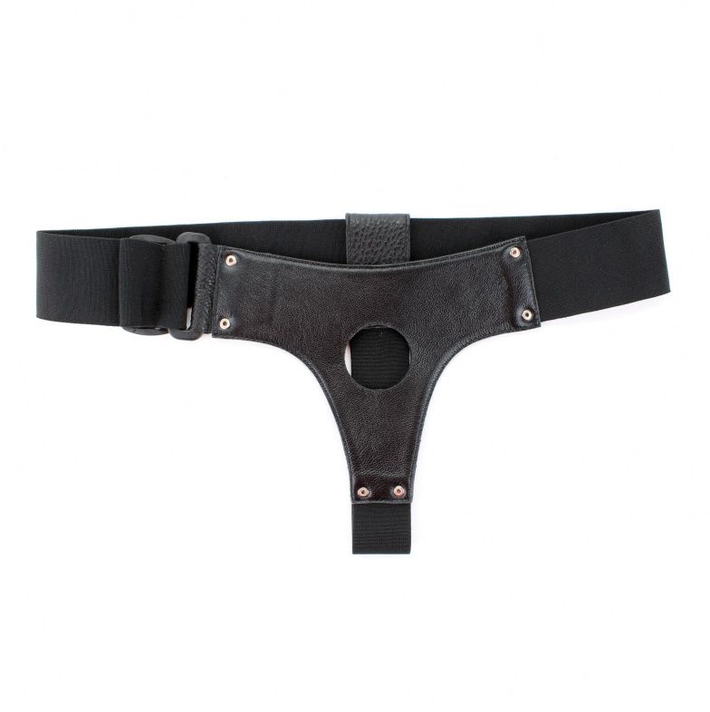 Трусики для страпона, изготовлены из кожи. Крепятся при помощи широких эластичных резинок (размер легко меняется) Диаметр отверстия для страпона - 4 см.