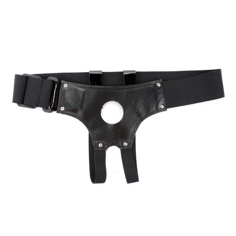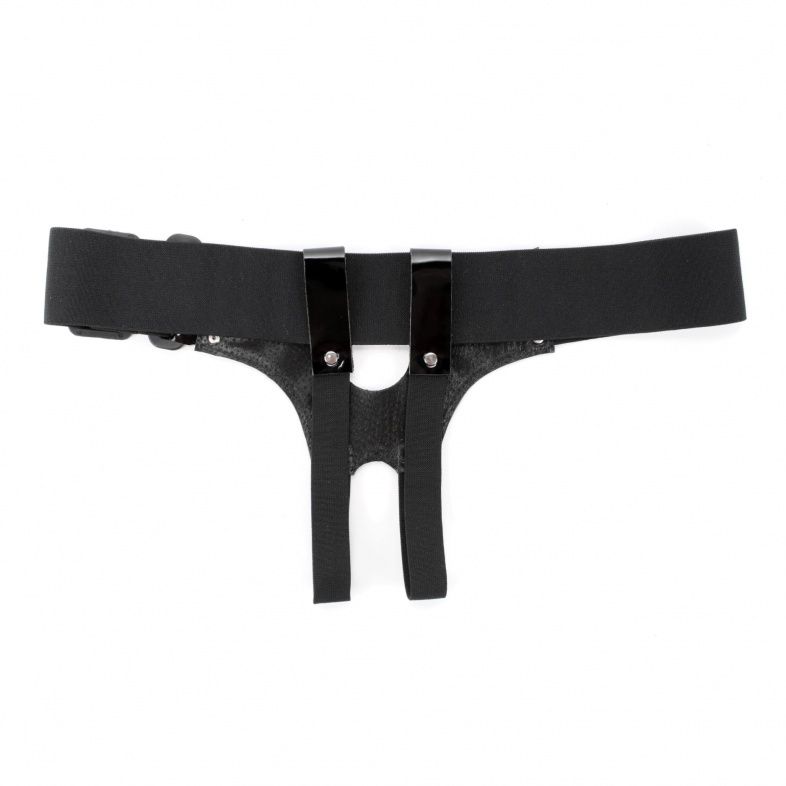 Трусики для страпона черного цвета, изготовлены блестящего лакового материала. Внутренняя поверхность из мягкого, бархатистого материала. Крепятся при помощи широких эластичных резинок (размер легко меняется). Диаметр отверстия для страпона - 4 см.