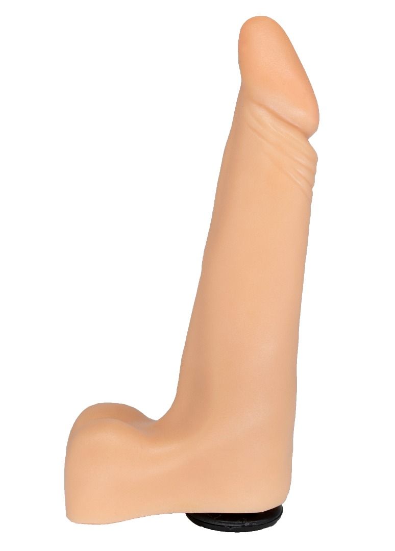 Лишь только взглянув на этот чувственный интимный аксессуар, вы ощутите, как волна возбуждения накрывает вас с головой. Эта приятная на ощупь насадка телесного цвета в точности повторяет контуры эрегированного члена. Вытянутая форма головки обещает быстрое достижение максимального удовольствия, а пышная мошонка ненавязчиво стимулирует клитор. Аксессуар можно использовать как дилдо или пристегнуть к трусикам со штырьком (трусики приобретаются отдельно).