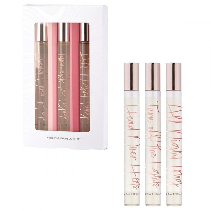 Три аромата в одной упаковке: кокетливый, соблазнительный и возбуждающий! Три парфюмерных масла с феромонами в тонких стильных упаковках с роликом. Ролик необходим для точного дозирования и подбора нужного количества масла для нанесения на кожу. Увеличивает естественное производство феромонов для повышения сексуальной привлекательности. Наносится как любой масляный парфюм на пульсирующие точки: на шею, на запястья. За ушами наносить не рекомендуется, в этом месте находится много желез, которые могут исказить запах парфюма. Формула масла прекрасно сочетается с pH кожи и создает именно Ваш уникальный аромат. При возникновении на коже аллергических реакций прекратить использование. Избегать контакта с глазами. В наборе 3 флакона с маслом по 12 мл. каждый