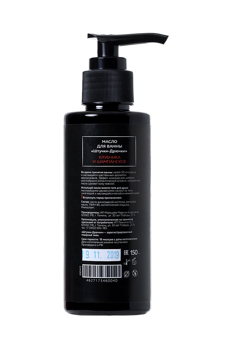 Масло для ванны и душа Клубника и шампанское с афродизиаками – прекрасный выбор для романтического вечера. Расслабляет, снимает нервное напряжение, создает романтическое настроение. При использовании в душе встряхните флакон, нанесите небольшое количество масла на свое тело или тело партнера, и приступайте к массажу. При использовании в ванной встряхните флакон, налейте 1/3 в горячую ванну, растворите, после ванны продукт можно не смывать с тела.