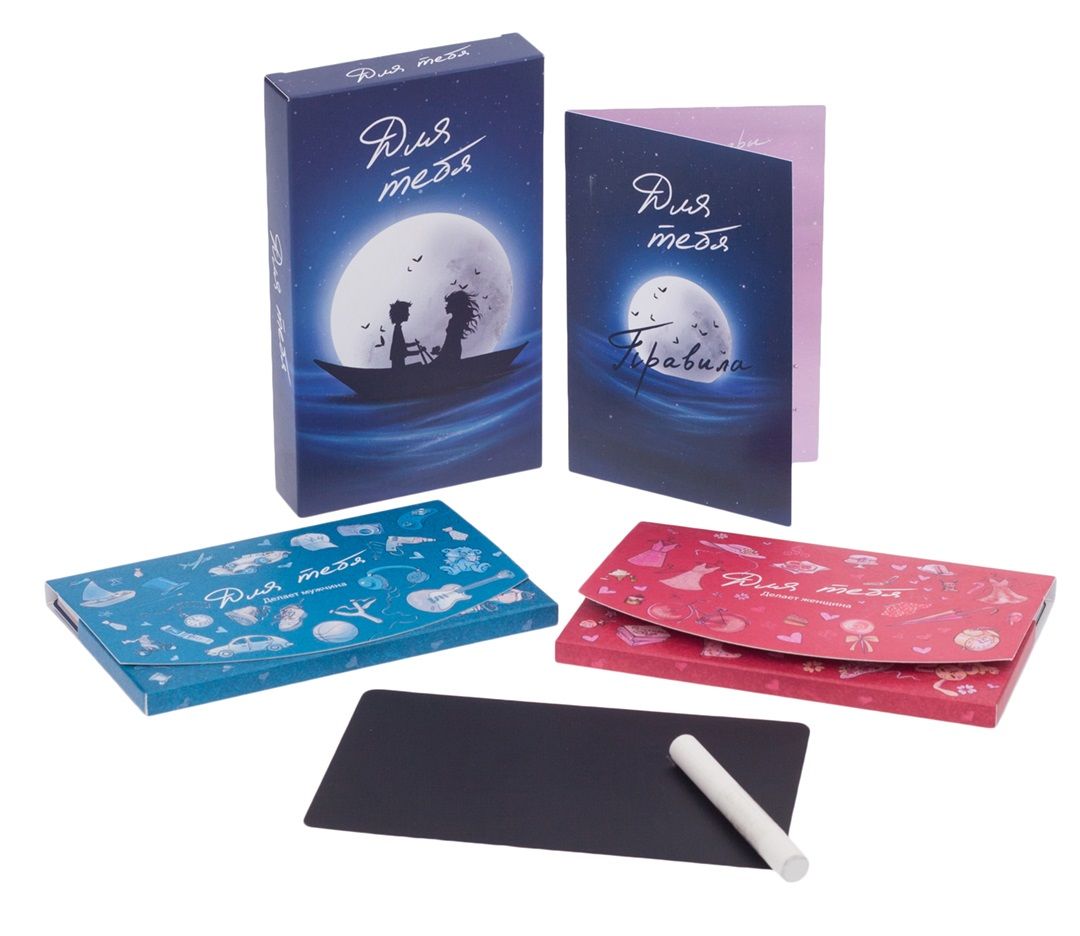 Страстно, как на первом свидании Эта игра — одна из самых необычных в нашем магазине: Партия длится 2-3 недели как минимум Игра может быть сыграна только один раз в жизни Это умная и очень красивая игра для влюбленных пар Всё в игре очень романтично и волшебно. Игра «Для тебя» вернёт уже давно живущей вместе паре страстные и живые ощущения первых месяцев ухаживаний и встреч, а для молодой пары станет подарком, который сделает отношения невероятно сильными. Как второй медовый месяц После того, как вы попробуете «Для тебя», вы поймёте, что ваш первый медовый месяц не был столь интересен и романтичен, как та игра, которая началась между вами сейчас. Просто теперь всё по-другому. Теперь вы не просто наслаждаетесь друг другом и совместно проведённым временем, а делаете то, на что никогда не решились бы, не будь этой игры. Что же это за невероятная коробка? Как играть? Внутри коробки вы найдёте два запечатанных конверта. Каждый из них содержит по 15 заданий для любимой и для любимого: Нельзя никому показывать свои задания Каждое задание — сюрприз К заданиям нужно готовиться, а потом преподносить их как волшебные подарки Игра сочетает в себе как сложные фанты, так и волнительный набор приключений: ближайшее время у вас совершенно не будет вставать вопрос как отдохнуть Если игра перевернёт вашу жизнь — мы не виноваты. Какие бывают задания? О, они самые разные, но каждое из них обязательно запомнится на долгие годы. Если вы, конечно, решитесь его сделать. На карточке задания есть как описание романтического сюрприза, так и подробная инструкция, как его выполнить. А ещё — полезные советы, «фишечки» и другие небольшие радости, которые делают даже обычные вещи невероятно красивыми. Некоторые задания потребуют от вас затрат для подготовки, но, опять же, их можно пропускать, ведь сделать нужно 10 из 15. Кому стоит подарить эту игру? Семейной паре на годовщину свадьбы или на другой праздник Молодожёнам на свадьбу или после медового месяца Парню и девушке, которые начали встречаться Как определяется победитель? Формально, в игре «Для тебя» можно выиграть: каждое выполненное задание отмечается мелком на специальном магните на холодильнике. Но, конечно же, если вы просто начнёте играть, выиграете вы, ваши отношения и ваше совместное счастливое будущее. Можно увидеть пример задания из игры или хотя бы крупную фотографию карточки? Суть игры как раз в том, что задания — это сюрпризы, поэтому примеров прямо из игры быть не может. Хотя, конечно, на фотографиях ниже можно разглядеть карточки :) Ладно, а хотя бы на что похожи задания? Они бывают самые разные: от очень простых, вроде приятного романтического подарка с особой атмосферой, до достаточно сложных или требующих некоторых трат. Многие сюрпризы — это те вещи, о которых мечтает каждая женщина и каждый мужчина, но редко дожидаются, потому что их «половинка» даже не знает о том, что так стоит сделать. В общем, если вы хотите освежить и укрепить отношения и при этом готовы приложить максимум сил ради радости, романтики и выполнения совершенно необычных вещей, то эта игра для вас. Насколько интимны сюрпризы? Есть и по одному «лёгкому» интимному заданию, но учитывая, что нужно сделать 10 из 15, их можно пропустить. В целом в конвертах нет ни одного сюрприза, который мог бы показаться слишком фривольным: это умная и оч
