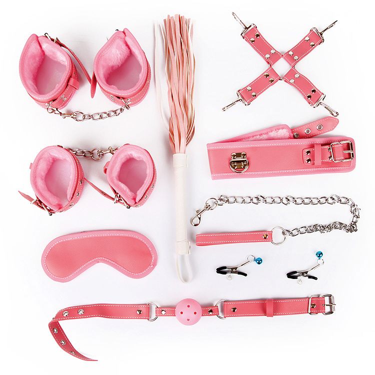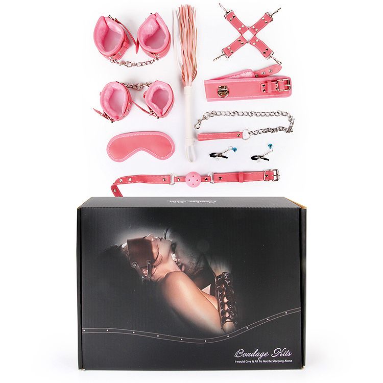 Великолепный набор аксессуаров для любителей БДСМ. Наручники, оковы, ошейник и маска снабжены специальной внутренней накладкой, предотвращающей натирание кожи. Также изделия имеют возможность регулирования размера. Плеть-флогер состоит из хвостов и удобной рукоятки с петлёй для подвешивания на крючок. Зажимы для сосков имеют эластичные накладки, которые препятствуют сильному сдавливанию сосков. На каждом изделии предусмотрен регулировочный винт, позволяющий контролировать силу сдавливания сосков. Подвески-бусинки дают небольшой эффект утяжеления и украшают зажимы. Кляп оснащён шариком с отверстиями для дыхания. В комплекте: наручники, оковы, ошейник с поводком, верёвка, фиксатор, плётка, кляп, маска, зажимы для сосков. Длина плети - 39 см.