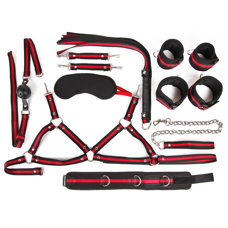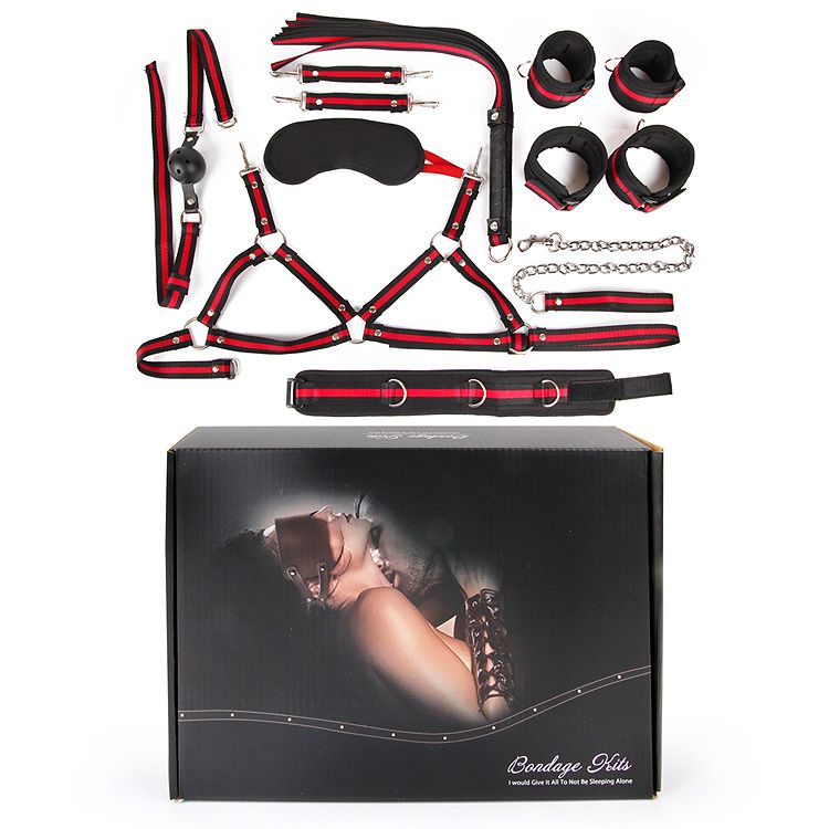 Великолепный набор аксессуаров для любителей БДСМ. В комплект входят наручники, оковы, ошейник с поводком, плеть, кляп, маска, лиф. Изделия имеют возможность регулирования размера. Плеть-флоггер состоит из хвостов и удобной рукоятки, снабжённой петлёй для подвешивания на крючок. Кляп оснащён шариком с отверстиями для дыхания. Наручники, оковы и ошейник снабжены специальной внутренней накладкой, предотвращающей натирание кожи. Набор упакован в большую красивую коробку.
