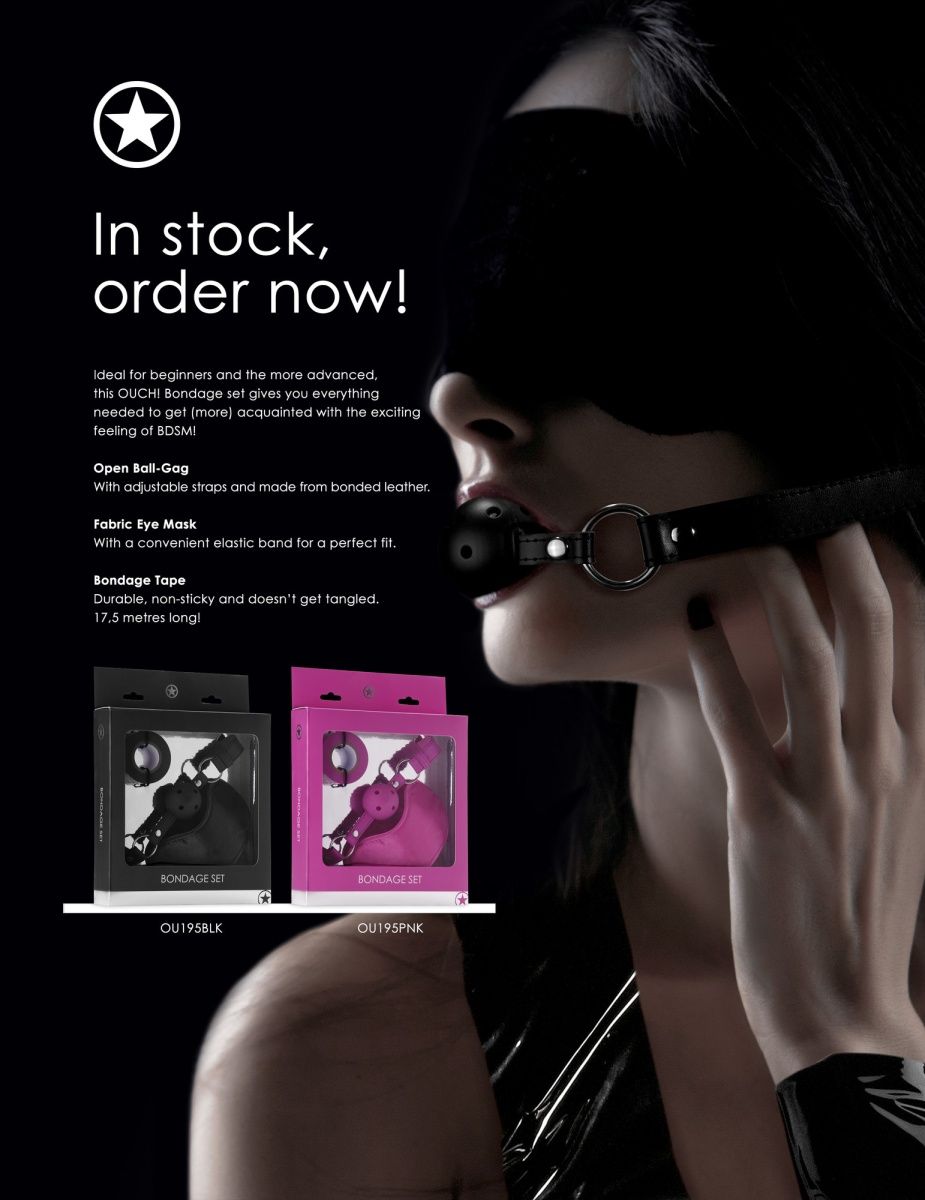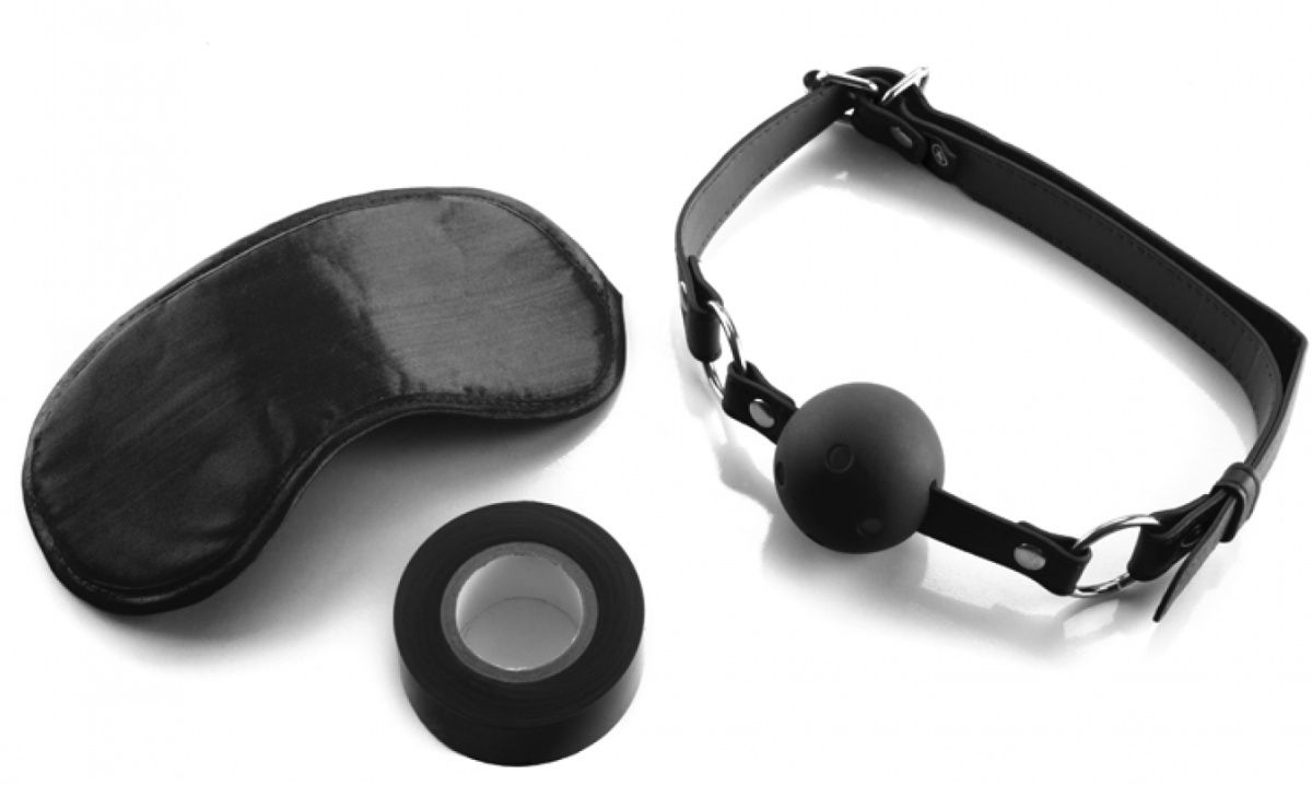 Набор для бондажа Bondage Set. Начните ваш путь в мире БДСМ с этим замечательным набором для бондажа, который идеально подходит как для новичков так и для более опытных любителей бондажа. Он состоит из кляпа-шарика, маски на глаза и скотча. В этом наборе есть все, что нужно для двоих. Ремешки кляпа регулируются по длине. Маска имеет удобную резинку для идеальной подгонки. Лента мягкая и прочная, не прилипает к коже и не путается. Длина скотча - 17,5 м.