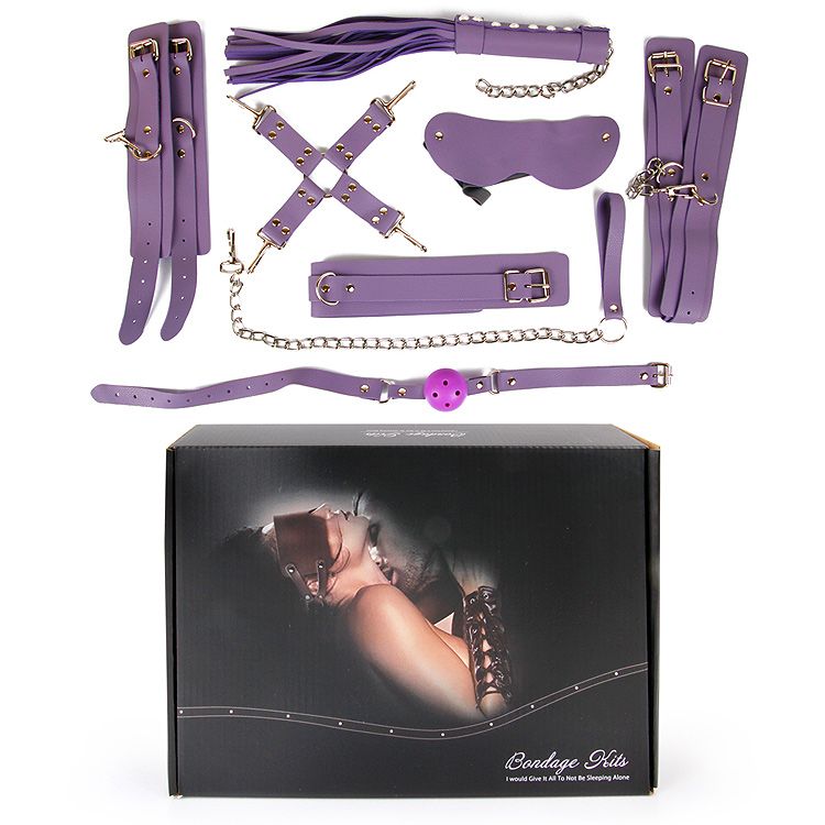 Великолепный набор аксессуаров для любителей БДСМ. Кляп, наручники, оковы, ошейник и маска снабжены специальной внутренней накладкой, предотвращающей натирание кожи. Также изделия имеют возможность регулирования размера. Плеть-флогер состоит из хвостов и удобной рукоятки с металлическими вставками и петлёй для подвешивания на крючок. Кляп оснащён шариком с отверстиями для дыхания. В комплекте:наручники, оковы, ошейник с цепочкой-поводком, фиксатор, плеть, кляп, маска. Длина плети - 39 см.
