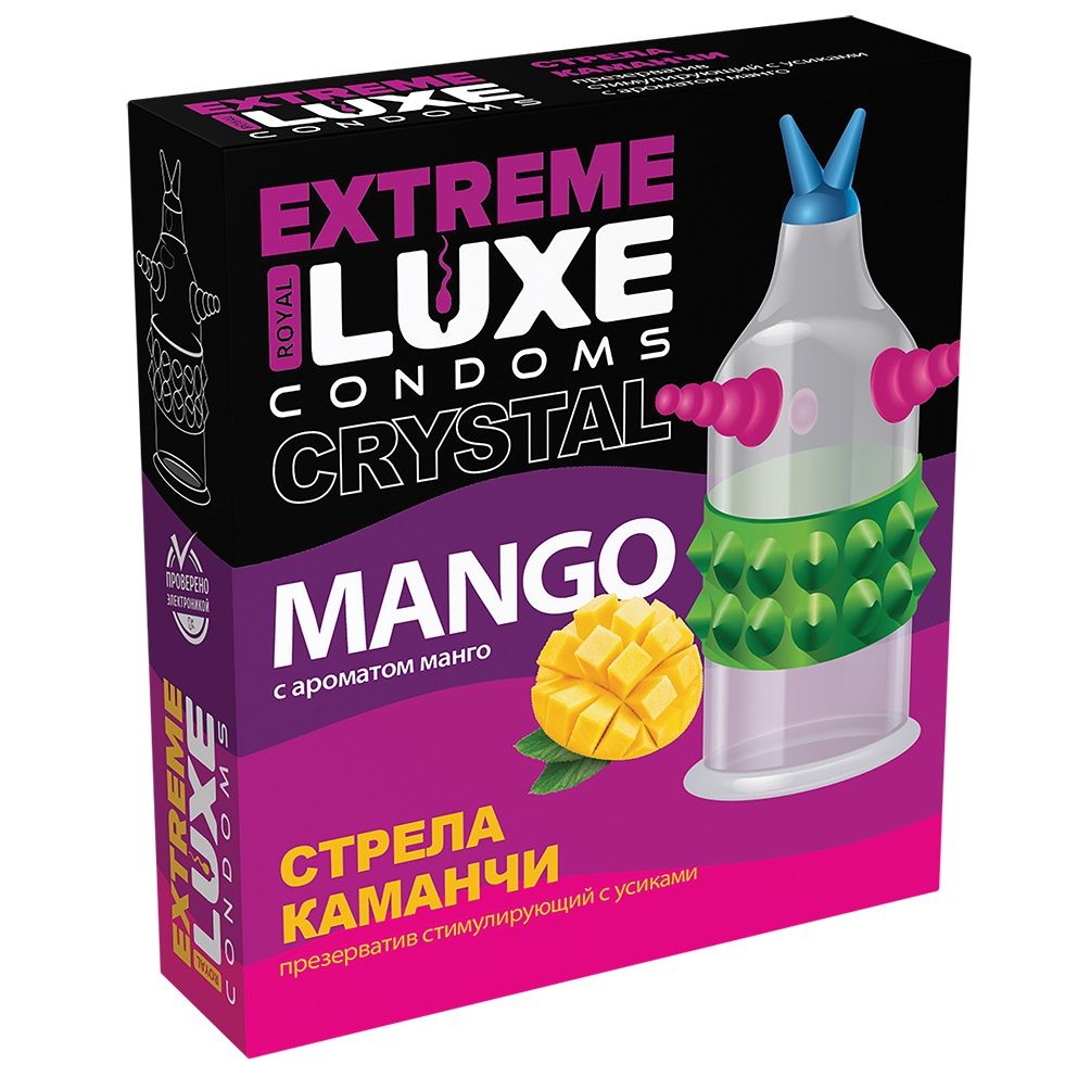 Стимулирующий презерватив с ароматом манго. Номинальная ширина - 52 мм. Толщина стенки - 0,06 мм.