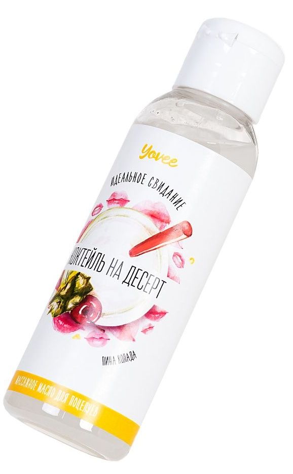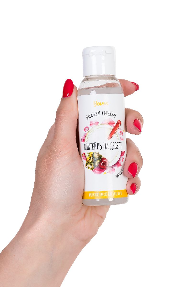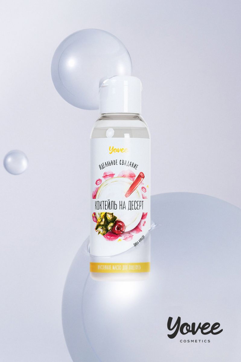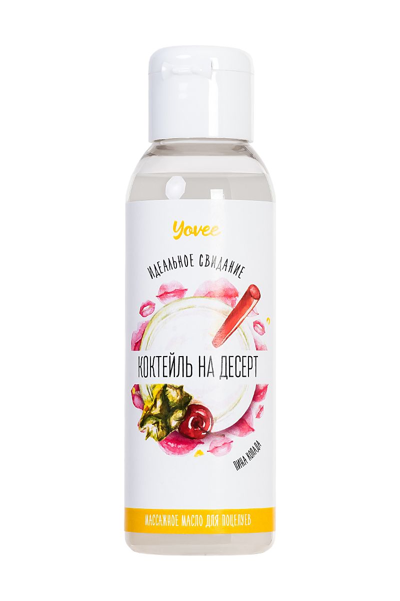 Массажное масло для полцелуев «Коктейль на десерт» Сделайте ваше свидание незабываемым: слизывайте масло прямо со своего партнера! С ароматным и вкусным массажным маслом, ваш партнер станет настоящим любовным коктейлем. Идея для свидания: Приготовьте пару коктейлей Пина колада и предложите партнеру незабываемый массаж. Лейте масло вдоль спины медленно, а затем начните слизывать приятное на вкус масло прямо с тела партнера. Такое свидание останется в памяти надолго!