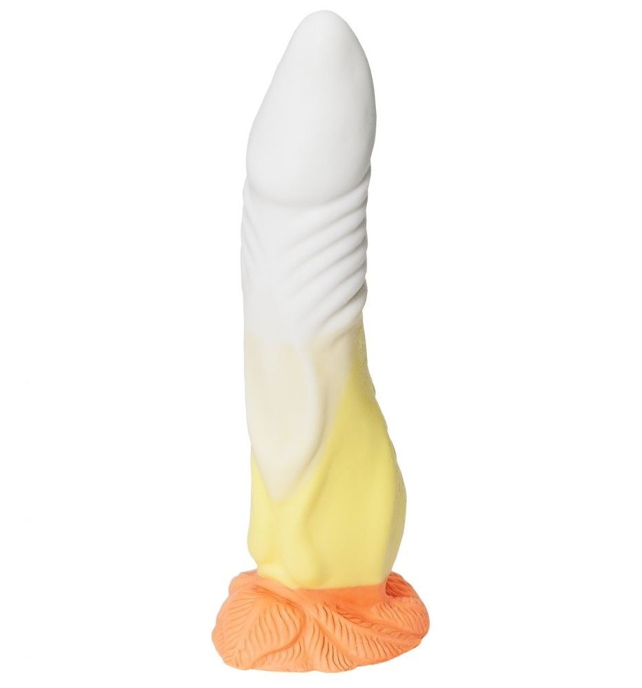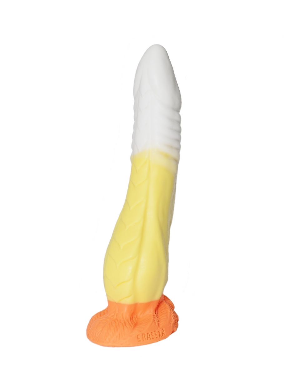 С этой по-настоящему красивой секс-игрушкой от Erasexa – первого и пока единственного российского производителя товаров интимного назначения для поклонников зооэротики – вы почувствуете, что умираете от наслаждения. Действительно большая как в длину, так и в диаметре, очень приятная на ощупь, податливая, с неповторимым рельефом… ох! «Феникс» выполнен вручную из нежнейшего силикона, имеет устойчивое ограничительное основание с узором в виде пёрышек и ствол, покрытый рёбрами и выступами. Впуская в себя эту бело-жёлтую птичку на всю глубину, вы раз за разом будете взлетать к вершинам блаженства!