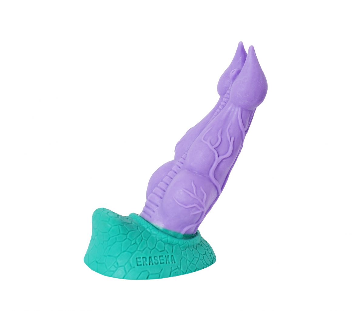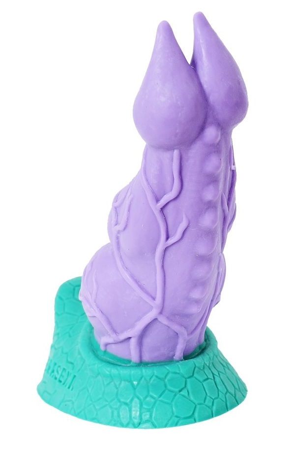 Если в ваших фантазиях то и дело фигурируют сказочные монстры и животные-гиганты, вам обязательно приглянется эта модель от Erasexa – первого и пока единственного российского производителя товаров интимного назначения для поклонников зооэротики. Фиолетовая игрушка не самой большой длины, но внушительного диаметра, покорит вас своей формой и рельефом. Мускулистый ствол, выполненный вручную из эластичного и очень мягкого силикона, сверху донизу покрыт венами и шишечками. Раздвоенная головка больше напоминает жала, однако она создана не жалить, а ласкать. Ограничительное основание зелёного цвета благодаря узору напоминает чешуйчатую кожу. «Раптор» - впустите эту ящерку в мир ваших плотских желаний, не прогадаете! Рабочая длина - 19,5 см. Диаметр головки - 5,5 см.