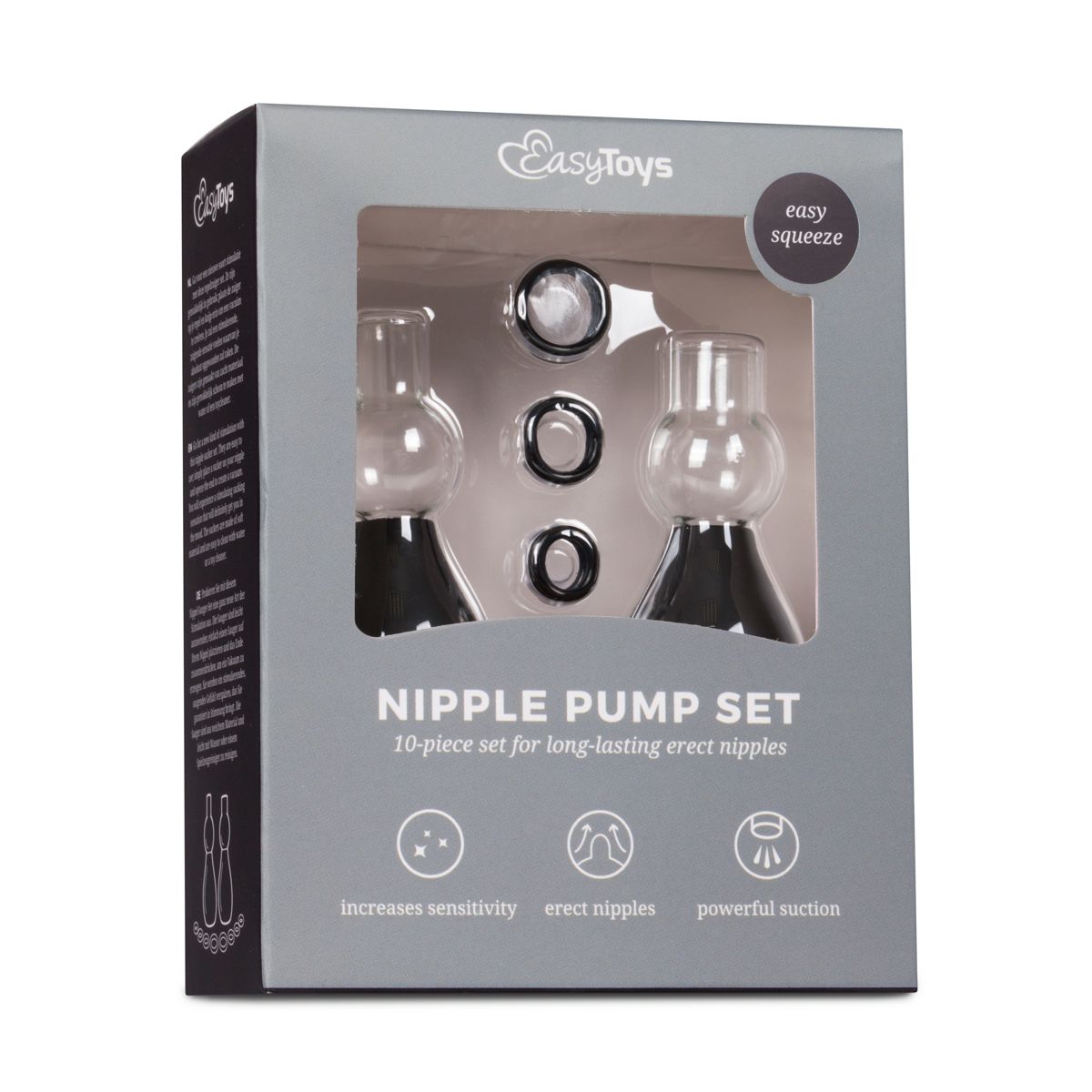 Вакуумные стимуляторы для сосков. Поместите присоску на сосок и сожмите ее, чтобы создать вакуум. В набор входят фиксирующие колечки на сосок разного диаметра.