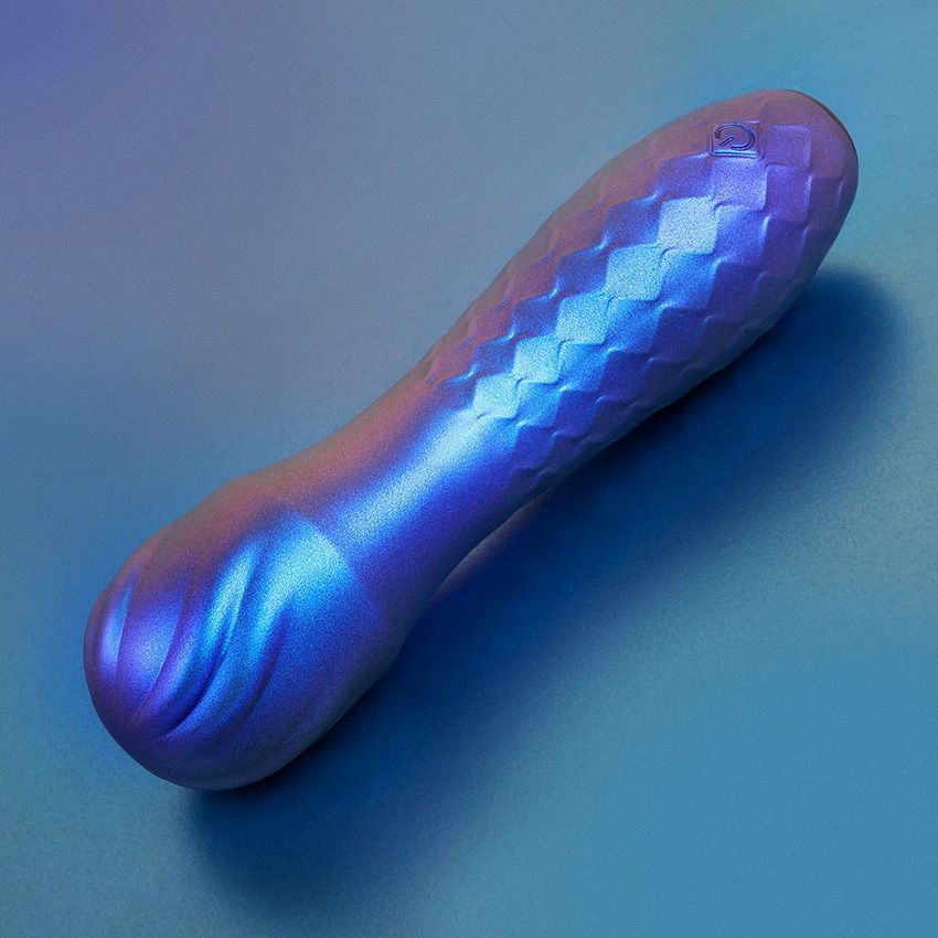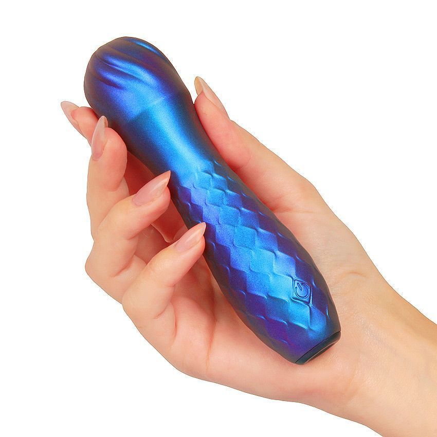 Синий вибромассажер с шаровидной головкой. 10 режимов вибрации. Перезаряжаемый.