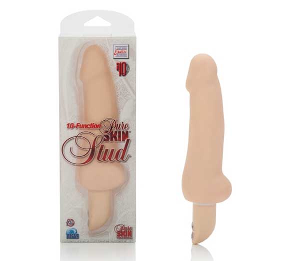Фаллоимитатор STUD 10-Function Pure Skin 6,75 - реалистичный вибратор из нежного мягкого материала с гладкой поверхностью. Гибкий и упругий вибратор имеет 10 функций вибрации и пульсации, которые регулируются двумя кнопками на встроенном пульте. Массажер водонепроницаемый и работает от двух батареек типа АА. Длина - 17,25 см. Диаметр - 3,75 см.