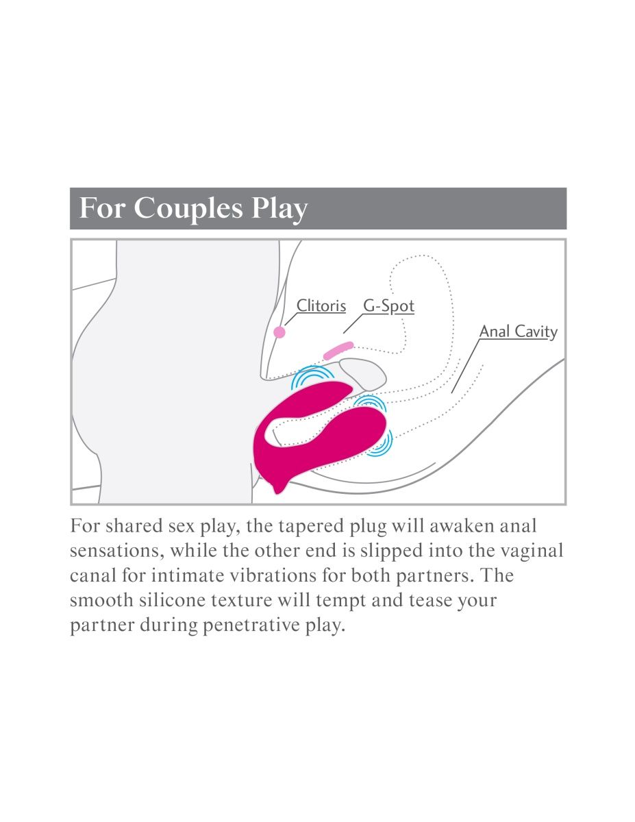 3Some Double Ecstasy - лучшая игрушка для любителей удовольствий, которые жаждут волнения, удовлетворения и сексуальной разрядки. Этот универсальный стимулятор применим в самых разных комбинациях - все зависит лишь от фантазии пользователя. Для совместной сексуальной игры небольшая обтекаемая пробка пробуждает анальные ощущения, а вибро-крылышко скользит в вагинальный канал для интимных вибраций для обоих партнеров. Гладкая силиконовая текстура приятно дразнит вашего партнера во время пенетрации, а партнерша ощущает большее трение, что невероятно повышает вероятность множественных оргазмов. Для сольной игры пробка вводится во влагалище, а вибро- крылышко может стимулировать клитор, если перевернуть стимулятор, то вибро-крылышком можно воздействовать на промежность или анус. Если мужчина не против анальной стимуляции, то мастурбацию можно дополнить невероятными ощущениям, вставив пробку анально, а вибро-крылышко расположить на промежности или мошонке - улетный оргазм вам гарантирован. Или просто поместите фаллос между пробкой и вибро-крылышком и наслаждайтесь мощными вибро-волнами до самой кульминации. Double Ecstasy предлагает тройное удовольствие с мощной вибрацией и соблазнительным дизайном. Dual Motors - это два суперсильных двигателя вибрируют в унисон, чтобы удвоить ваше удовольствие! Рабочая длина пробки - 7,11 см., диаметр - 3,05 см. Рабочая длина виброкрылышка - 7,11 см., диаметр - 4,06 см.
