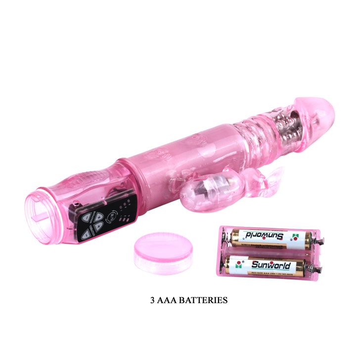 Нежный гелевый вибратор розового цвета, имеет 3 уровня вибрации и пульсацию трех скоростей. Управление осуществляется при помощи панели управления в основании вибромассажера. Совершает возвратно-поступательные движения. Рабочая длина - 12,7 см. Длина клиторального отростка - 8 см.